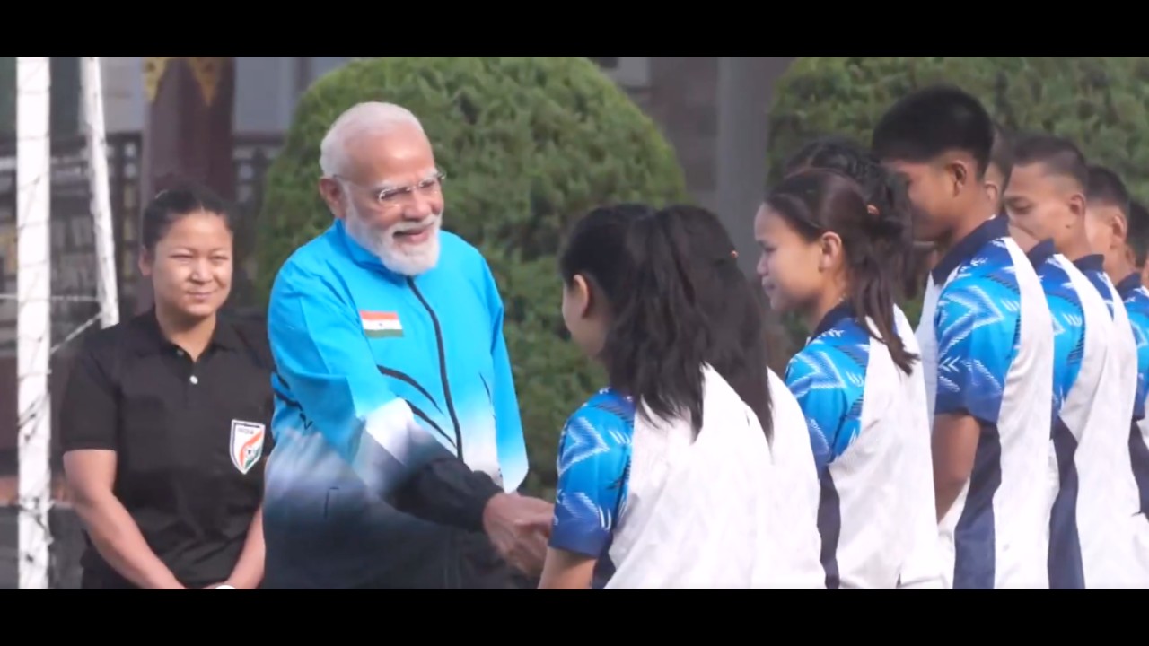 मंगलवार को गंगटोक में आयोजित एक कार्यक्रम के दौरान प्रधानमंत्री मोदी अचानक बच्चों के बीच पहुंचे और उनके साथ फुटबॉल खेलने लगे। उन्होंने मैदान में गेंद को ड्रिब्ल किया, गोल भी किया और बच्चों के साथ हाई-फाइव कर उनका उत्साह बढ़ाया। इस दौरान वहां मौजूद लोगों ने इस खास पल को अपने कैमरों में कैद कर लिया, जिसके बाद तस्वीरें और वीडियो सोशल मीडिया पर तेजी से वायरल हो गए।